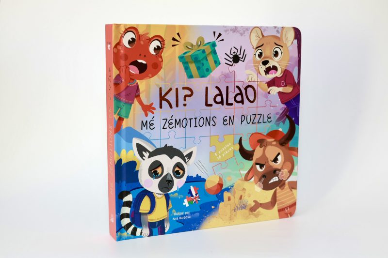 Un livre-puzzle trilingue pour reconnaître joie, colère, peur, tristesse, surprise avec des animaux emblématiques de Madagascar.